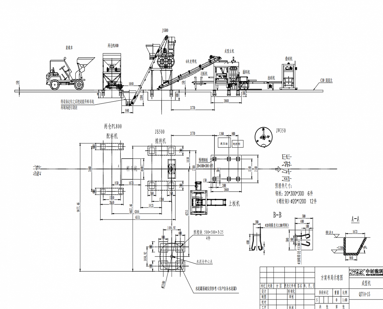 Линия QT4-15 включает полный комплект оборудования для производства бетонных изделий:
