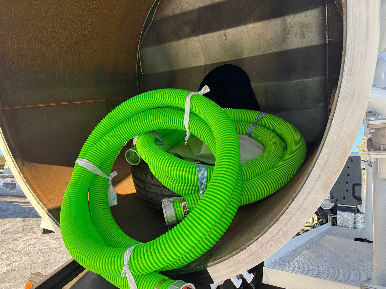 Цистерна поднимается гидравликой для быстрой выгрузки.