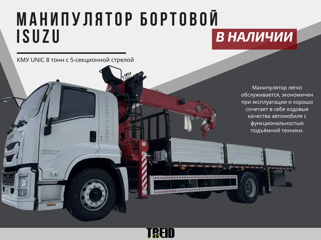 Манипулятор бортовой КМУ ISUZU 4x2, 8 тонн, 5-секционная стрела